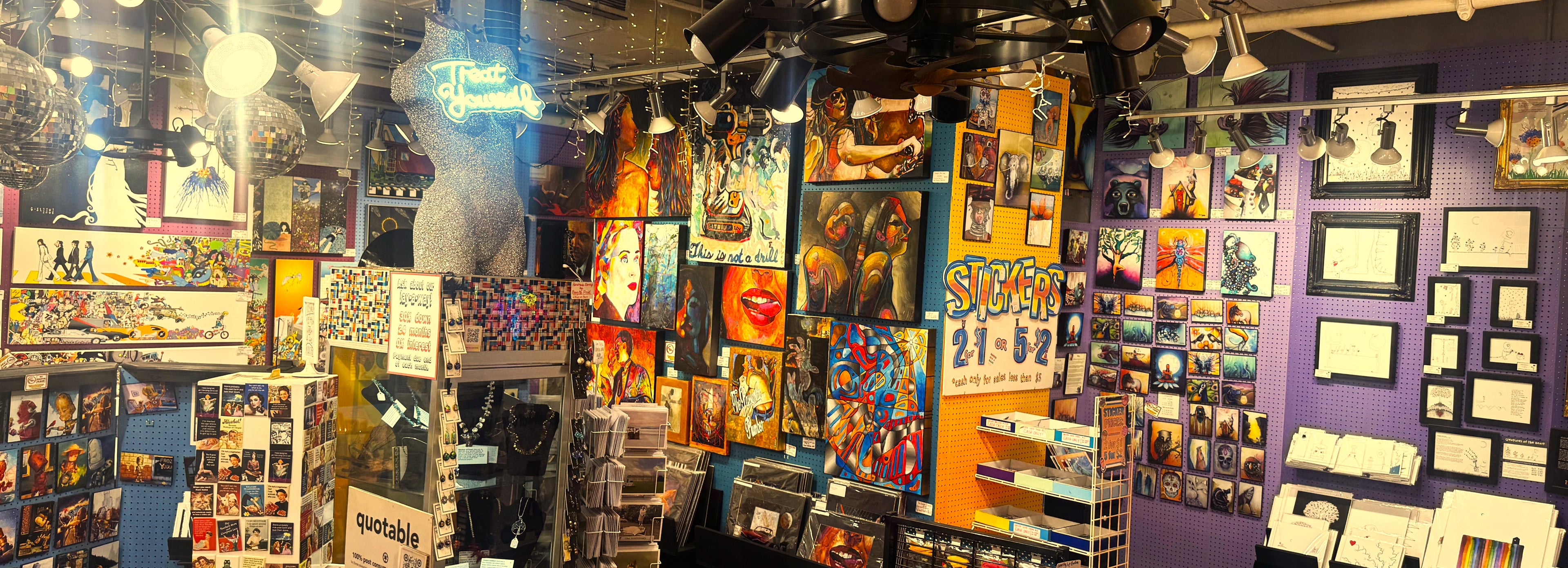 Gallery curated with human made contemporary pop art with a fun