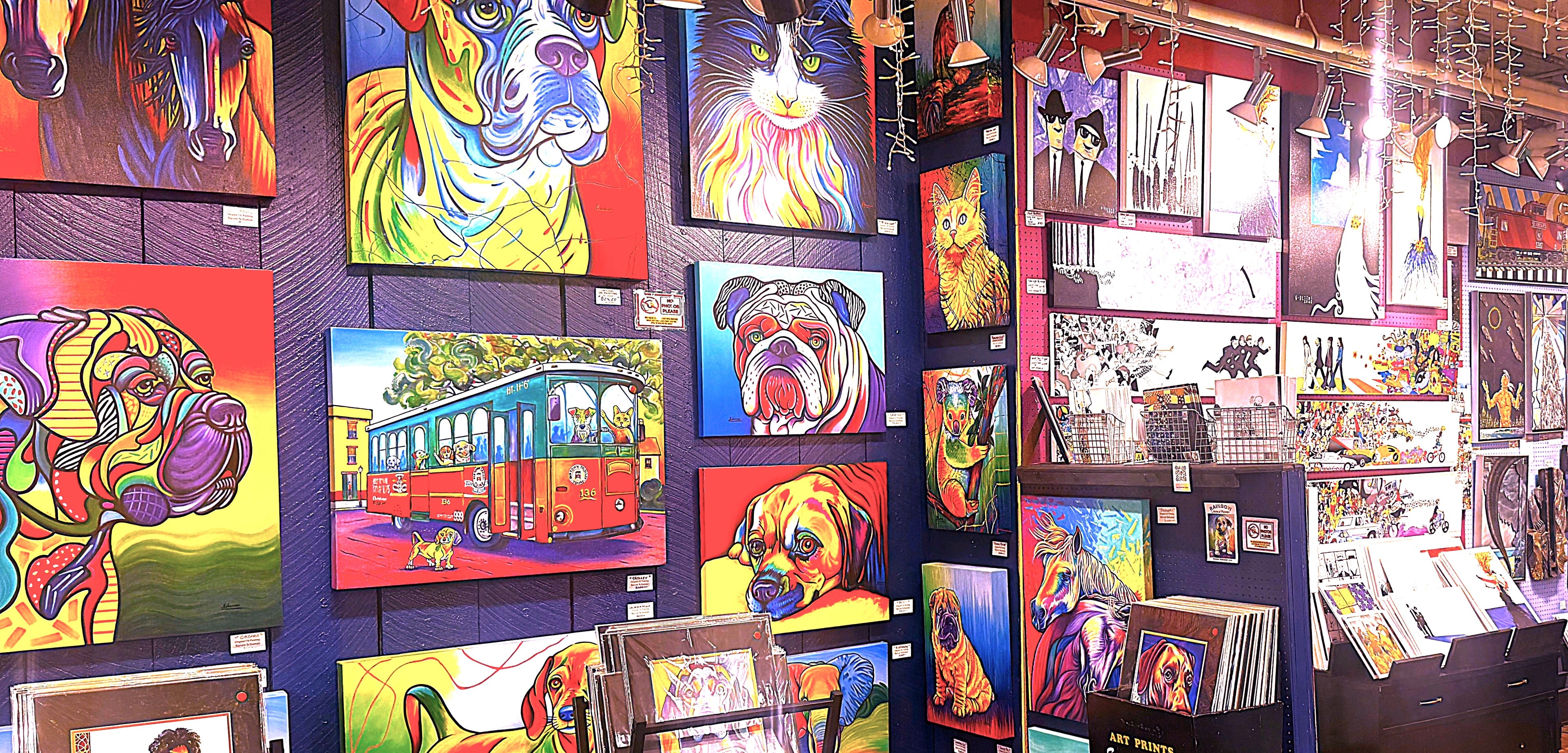 Gallery curated with human made contemporary pop art with a fun